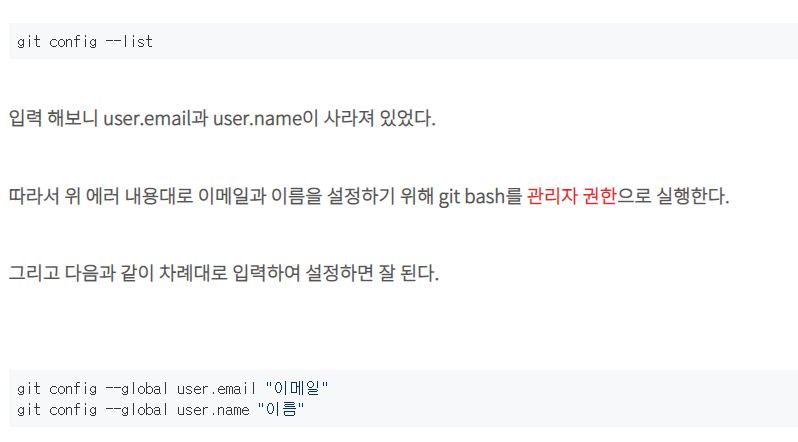 config문제인가? 생각했다 그러고 나서 config부터 이메일 과 이름을 작성했더니...