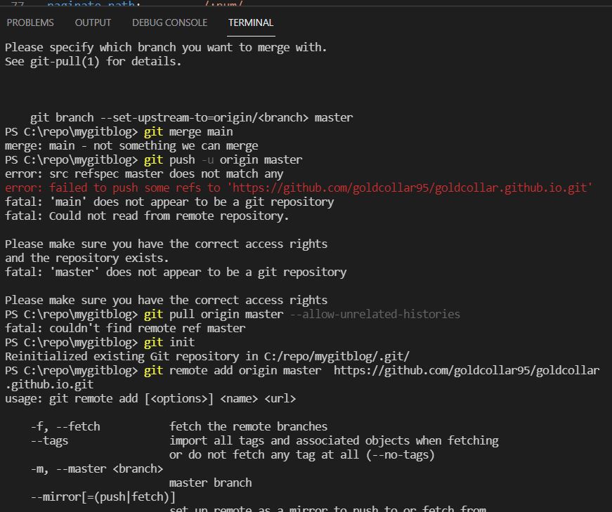 이 화면만 몇시간 째 떠서 상당히 애를 먹었다. 구글을 뒤져봐서 pull과 push의 과정을 통해 바꿔야 한다고 말은하는데