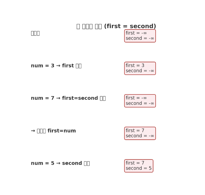 → 결국 두 번째 큰 값을 잃어버려서 로직이 깨짐