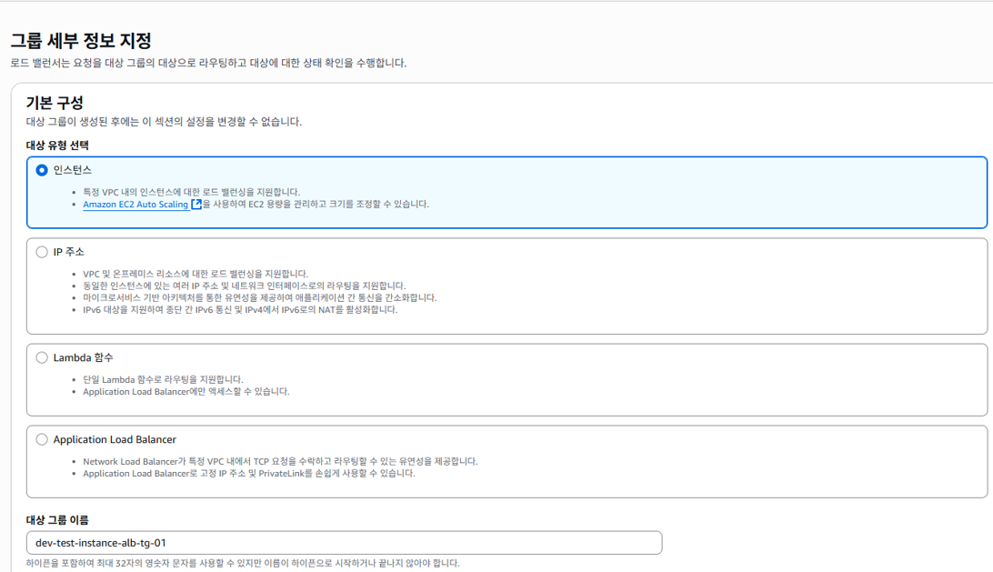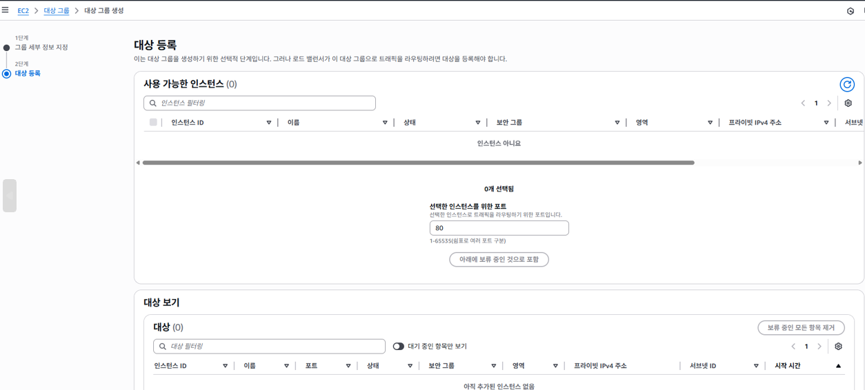 인스턴스를 생성하기 전이라 대상 그룹만 설정을 진행한다.