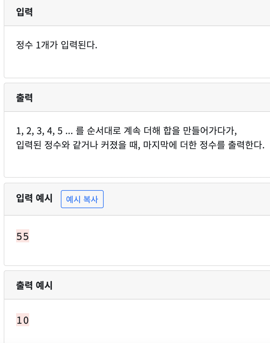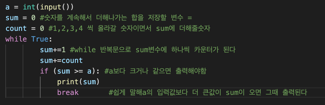 sum과 count의 수가 입력한것보다 >=(같거나 클때) break문으로 빠져나와 출력해주는 과정이라 설명이 되겠다.