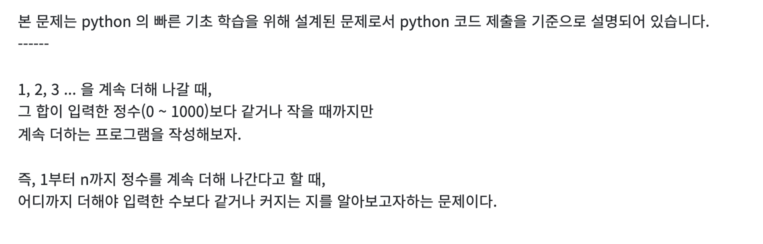 반복문의 함수를 이용해 푸는 공석인데, sum이 하나씩 증가하면서 a(내가 입력할 수)를 놓고 입력하였을 때