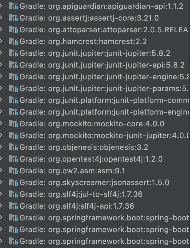 왼쪽의 부분을 확대해보면 Gradle: org. ~~~~~ 의 형식이 나오게되는데, Maven과 같은 이전 세대 빌드 도구의 단점을 보완하고 장점을 취합하여 만든 오픈소스로 공개된 빌드 도구이다. 그래서 지금은 Maven보다 Gradle을 주로 많이쓴다고 한다.