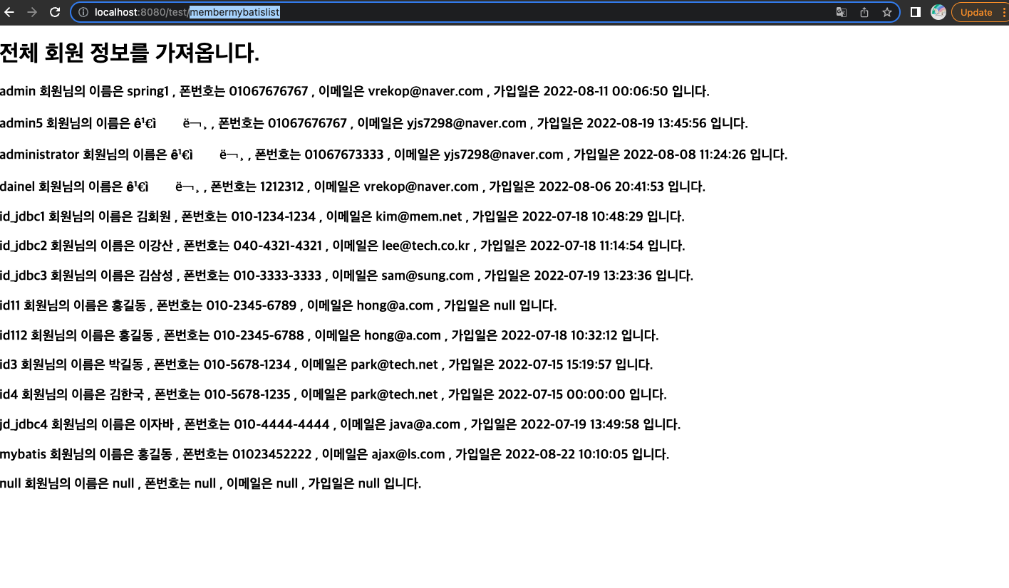 모든 과정은 Service로 부터 시킴받아서 dao -> sqlSession session을 받는다. -> sql-mapping.xml 에서 memberlist 확인.