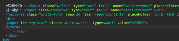 신고하기 기능을 구현하면서 사용자가 글을 작성하면 reportcontenst라는 신고내용안에 글을 넣을수 있도록한다.