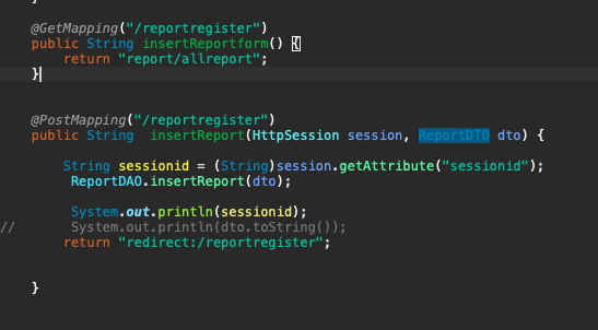 참고로 get/post 방식이 헷갈리는 경우가 있어서 한번에 정리해본다. Get은 주로 Create부분에서 작성해줄 때 보여주는 화면이 그렇게 많지않을 때 작성폼을 return을 해주는 allreport, postmapping은 글 작성이 끝나고 다시 작성 전으로 돌아갈수 있게 redirect
